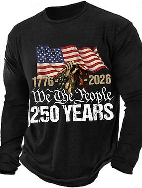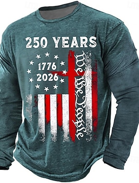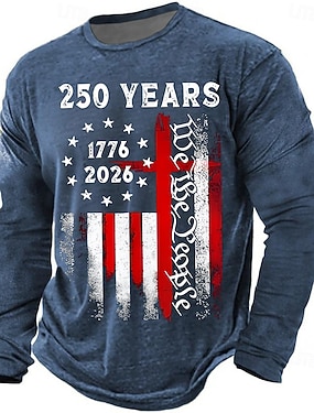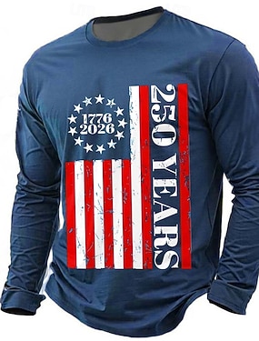 4 lipca 2026 250. rocznica Dnia Pamięci Męska Koszulka z nadrukiem 3D Flagi USA Okrągły Dekolt Długo Rękawowy Codzienna