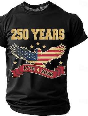 4 lipca 2026 250. Dzień Pamięci Męski T-shirt z krótkim rękawem z nadrukiem 3D Flaga USA Crew Neck Casual Dzienny