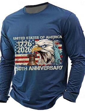 4 lipca 2026 250. Rocznica Dnia Pamięci Męska Koszulka z 3D Print z Okrągłym Dekoltem Długim Rękawem Casual Codzienny