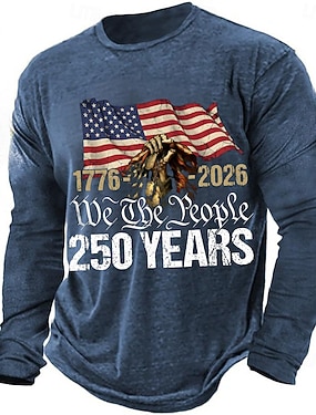 4 lipca 2026 250. Dzień Pamięci Męski Patryiotyczny Graficzny T-shirt z nadrukiem 3D Flaga Narodowa Weteran z długim rękawem Dzienny Sport