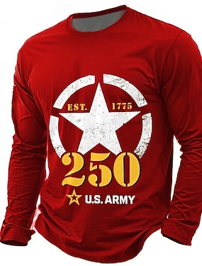 4 lipca 2026 250. rocznica Dnia Pamięci Męska koszulka T-shirt z nadrukiem 3D z okrągłym dekoltem i długim rękawem na świeżym powietrzu codzienna