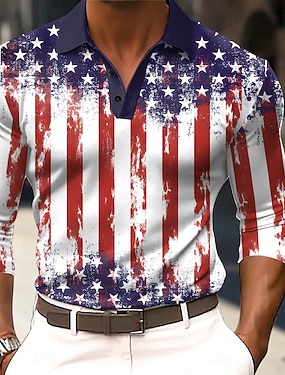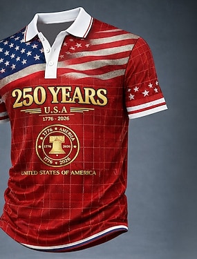 4 lipca 2026 250. Dzień Pamięci Męski Projektant Graficzny T-shirt Henley z długim rękawem z nadrukiem 3D Flaga Narodowa Outdoor Dzienny