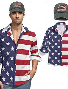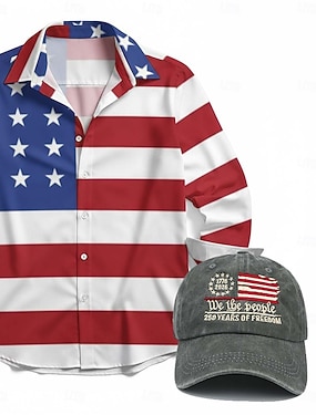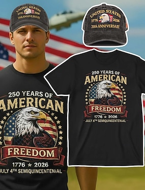 250-lecie USA T-shirt i zestaw z czapką z daszkiem - T-shirt z grafiką orła na tle flagi USA 1776-2026 patriotyczny dla mężczyzn dorosłych na Dzień Niepodległości