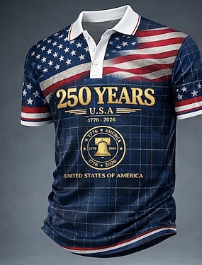 4 lipca 2026 250. Dzień Pamięci Męska Koszulka Designer z Drukiem 3D Flagi USA Krótki Rękaw Casual Codziennie Ulica