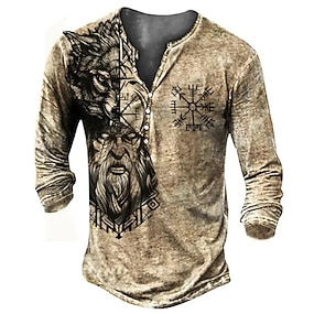 Męskie Graficzny Wiking Koszula Henley Długi rękaw Druk 3D Codzienny Vintage Retro Codzienny Święto Wyjściowe Wiosna i jesień Khaki Henley Koszulka Henley