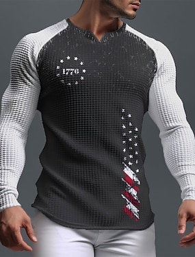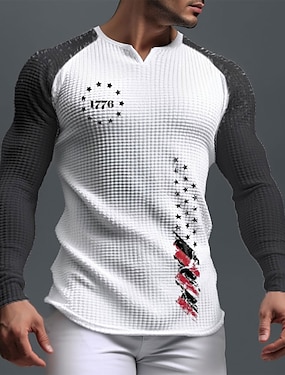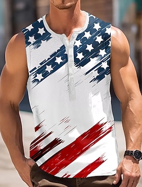 4 lipca 2026 250. Rocznica Dnia Pamięci Męska Projektantska Koszulka Henley z Flagą USA Krótkim Rękawem Na Świeżym Powietrzu Codzienny Sport