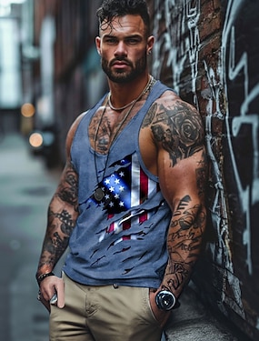 4 lipca 2026 250. rocznica Dnia Pamięci Męska Patriotyczna koszulka T-shirt z nadrukiem 3D Flagi USA weteran z wiązaniem z krótkim rękawem na świeżym powietrzu sportowa