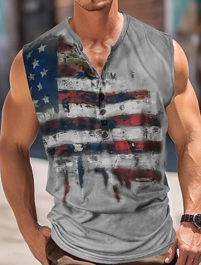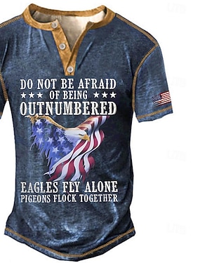4 lipca 2026 250. rocznica Dnia Pamięci Męska Vintage Retro Projektant Graficzny 3D Druk Amerykańska Flaga Henley T-shirt z krótkim rękawem Casual Codzienny Ulica