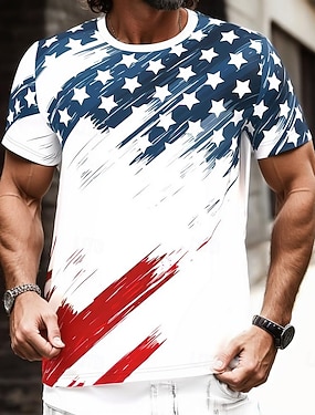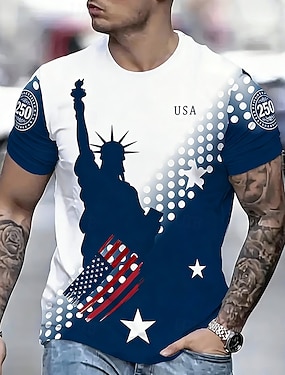 4 lipca 2026 250. Dzień Pamięci męska koszulka t-shirt z grafiką projektu 3D z amerykańską flagą okrągły dekolt krótki rękaw casual styl uliczny