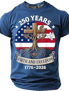 4 lipca 2026 250. Dzień Pamięci Koszulka Męska Pismo Święte Patriotyczna Vintage Retro Patriot 3D Druk Flaga USA Okrągły Dekolt Krótki Rękaw Casual