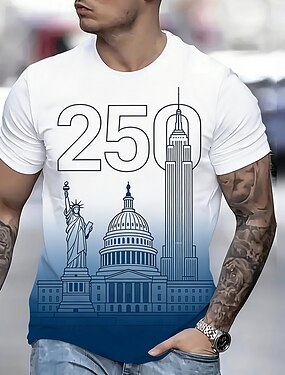 4 lipca 2026 250. Dzień Pamięci Męski Patriotic Patriot T-Shirt z 3D Printem z Flagą Amerykańską Krótki Rękaw Na Ulicy