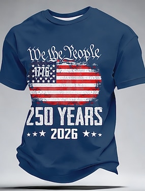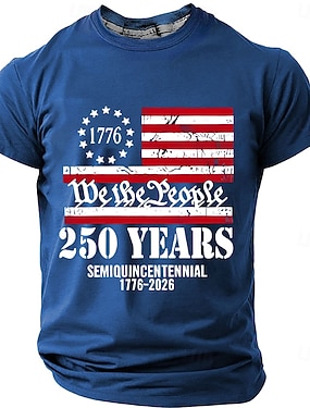 4 lipca 2026 250. Męskie Jednokolorowe Amerykańska flaga USA Podkoszulek Krótki rękaw Podkoszulek Druk 3D Półgolf Koszula Vintage Retro Patriotyczny Codzienny Festiwal Niebieski 3# Niebieski 2