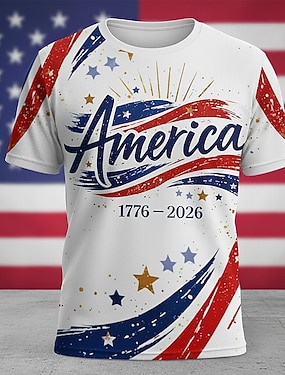 4 lipca 2026 250. rocznica Dnia Pamięci Męski 3D Druk Amerykańska Flaga T-shirt z okrągłym dekoltem i krótkim rękawem Codzienny Ulica