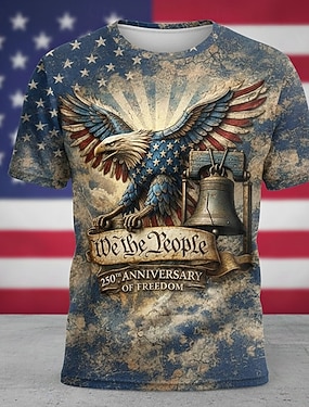 4 lipca 2026 250. rocznica Dnia Pamięci Męska Koszulka z nadrukiem 3D z amerykańską flagą okrągły dekolt krótki rękaw Codzienna Uliczna