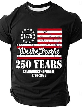 4 lipca 2026 250. Dzień Pamięci Mężczyzn 3D Print Flagi USA T-shirt z krótkim rękawem crew neck Daily Street