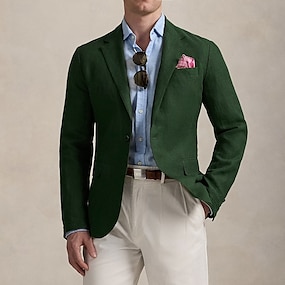 Męskie Lniana marynarka Sportowy płaszcz Kołnierz z wycięciem Moda Solidne kolory Marynarka lniana Zieleń wojskowa Luźny / a Jednorzędowa, jeden guzik