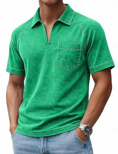Męskie Koszulki polo Koszula ze 100% bawełny Acid Wash Codzienny Święto Klapa Krótki rękaw Moda Podstawowy Równina Postarzane Zakłopotany Lato Wiosna Na każdy sezon Regularny Czarny Jasnozielony