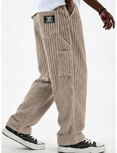 Męskie Spodnie Spodnie sztruksowe Spodnie zimowe Spodnie codzienne Luźne spodnie Ściągana na sznurek Multi Pocket Jednokolorowe Komfort Pełna długość Codzienny Na zewnątrz Streetwear Moda Moda miejska