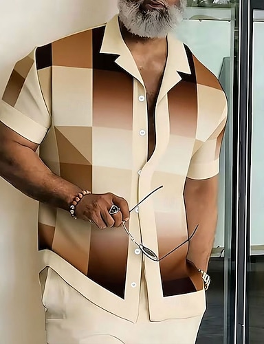 Męskie Geometryczny Krata / pled Kolor gradientu Koszula Zapinana na guziki koszula Koszula obozowa Krótki rękaw Moda na co dzień Streetwear Urlop Lato Wiosna Kubański kołnierz Druk 3D Niebieski