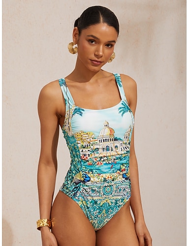 Baleary niebieski elastyczny jednoczęściowy kostium kąpielowy