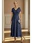 Krój A Sukienki Sięgająca podłoża Do kostki Sukienka koktajlowa Sukienka dla gościa weselnego Sukienka dla matki panny młodej Krótki rękaw W serek Elegancja Codzienny Formalny Gość weselny P