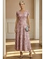 Ołówkowa Kolumnowa Do kostki Koronkowa sukienka Sukienka koktajlowa Elegancja Zabytkowe Kwiaty Krótki rękaw Dekolt serduszko Impreza w ogrodzie Ślub Satyna Tiul z Kwiaty 3D Haft Haft nakładany