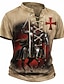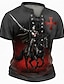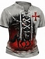 Męska koszulka z nadrukiem rycerza na koniu, czerwonym krzyżem templariuszy, średniowiecznym krzyżowcem, wojownikiem, fantazją, sznurowana, z nadrukiem na całej powierzchni, dekoltem w serek, krótkim