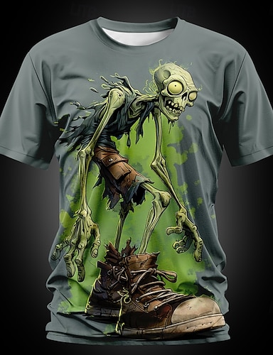 Halloween Męskie Wzór 3D Zombie 3D Podkoszulek Krótki rękaw Podkoszulek Druk 3D Półgolf Koszula Przesadny Designerskie Przerażenie Impreza Ulica Święto Zielony Lato Wiosna Na każdy sezon Odzież S M L