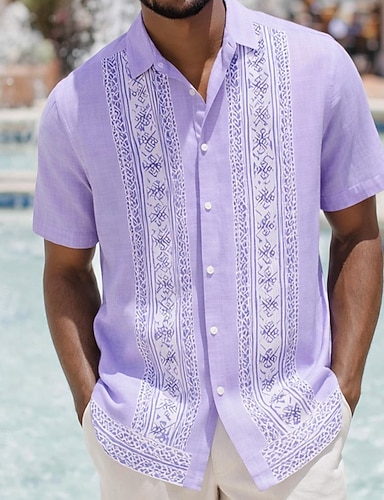 Męskie Koszula lniana Letnia koszula Stroje plażowe Zapinana na guziki koszula Równina Codzienny Plaża Czarny Biały Jasnozielony Rumiany róż Krótki rękaw Wieczorne Lato Odzież Gładkie
