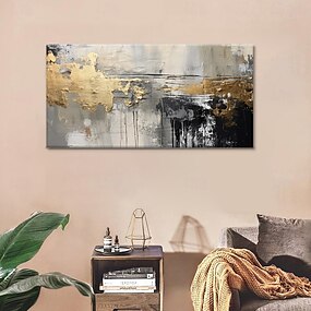 Ręcznie malowany obraz olejny na płótnie, dekoracja ścienna, nowoczesny, prosty, szary i złoty, abstrakcyjny, do wystroju domu, zwinięty, bez ramy, nierozciągnięty
