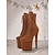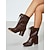 Damskie zamszowe buty do połowy łydki w kolorze brązowym z ozdobnym plecionym paskiem, składanym krojem i obcasami typu kaczuszka, miejskie, codzienne obuwie damskie do noszenia na co dzień