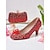 Damskie czerwone botki na szpilce z kryształkami - lśniący świąteczny blask, idealny na przyjęcia świąteczne i uroczystości
