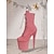 Damskie różowe lakierowane botki do połowy łydki z przezroczystymi, klockowymi obcasami – modne obuwie imprezowe na wieczorne wyjście &stroje klubowe