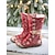 damskie czerwono-białe kowbojskie buty w stylu western z nitami na święta Bożego Narodzenia, wygodne buty na obcasie na świąteczne uroczystości i zimowe festyny