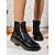 damskie czarne płócienne, sznurowane buty do kolan z białą podeszwą – obuwie casualowe w stylu retro do noszenia na co dzień i do mody ulicznej