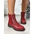Damskie czerwone botki bojowe na święta - modne, sznurowane botki na święta dla kobiet - idealne na Wigilię, do zimowej mody i na co dzień