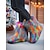 kolorowe, tęczowe, damskie, sztuczne futrzane, śnieżne buty do kostki – zabawne, wygodne i żywe obuwie na zimowe święta, imprezy świąteczne i do noszenia na co dzień