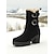 damskie czarne zamszowe botki z podszewką ze sztucznego futra i złotymi guzikami – stylowe botki na klockowym obcasie na zimę