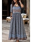 Damskie Sukienka maxi Sukienka A line Codzienny Codzienny Plaża Luźna Geometryczny Krótki rękaw W serek Niebieski Ciemnobrązowy Jasnozielony Czerwony Lato Wiosna