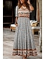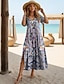 Damskie Sukienka midi Sukienka letnia Sukienka trapezowa Sukienka A line Urlop Codzienny Boho Plaża Wyjściowe Luźna Graficzny Geometryczny Bez rękawów Wycięcie pod szyją Niebieski Biały Żółty Rumiany