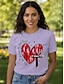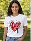 Damskie Podkoszulek Serce Graficzny Litera Zabytkowe Elegancki Klasyczny Krótki rękaw Półgolf Zwykłe topy Codzienny Weekend Nadruk Niebieski Biały Rumiany róż Fioletowy Lato Wiosna Jesień