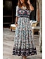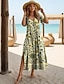 Damskie Sukienka midi Sukienka letnia Sukienka A line Urlop Codzienny Boho Plaża Wyjściowe Luźny / a Kwiaty Graficzny Krótki rękaw W serek Niebieski Szarozielony Biały Jasnozielony Lato Wiosna