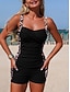 Damskie Tankini Dwuczęściowy strój kąpielowy Kantar Otwórz Wróć Kąpielówki Stroje kąpielowe czarny / biały Czarny Oddychający Szybkie wysychanie Lekki Bez rękawów - Pływacki Surfing Plaża Lato Wiosna