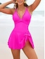 Damskie Stroje kąpielowe Jeden kawałek Sukienka kąpielowa Kostium kąpielowy Wyszczuplenie brzucha Wysoka talia Szczupła Odkryte plecy Urlop Zabytkowe Jednokolorowe W serek Bez rękawów Kostiumy