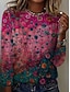 Damskie Podkoszulek Kwiaty Graficzny Rośliny Bohema Zabytkowe Elegancki Długi rękaw Półgolf Zwykłe topy Codzienny Weekend Ubrania wakacyjne Nadruk Czerwony Lato Wiosna