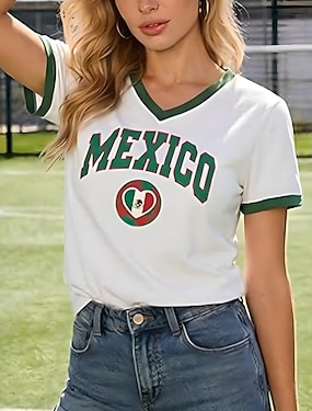 Amerykański Dzień Niepodległości Damskie Bluzka Nadruk Flaga Codzienny Krótki rękaw W serek Zwykłe topy Codzienny Granatowy Khaki Czerwony / Niebieski Jasnoniebieski Lato Wiosna