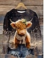Damskie Podkoszulek Graficzny Zwierzę Plemienny Zabytkowe Elegancki Klasyczny Długi rękaw Półgolf Okrągły dekolt Długie topy Codzienny Nadruk Czarny Brązowy Khaki Wiosna Jesień