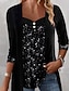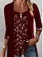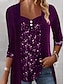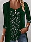 Damskie Podkoszulek Graficzny Rośliny Plemienny Zabytkowe Elegancki Klasyczny Długi rękaw W serek Karbowana szyja Zwykłe topy Codzienny Weekend Nadruk Jasnoszary Wiosna Jesień Zima