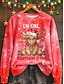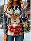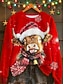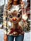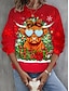 sweter damski świąteczny z grafiką zwierzęcą, ciepły, klasyczny, swobodny, z długim rękawem, okrągłym dekoltem, regularny, domowy, codzienny, nadruk, różowy, czerwony, brązowy, zielony, jesień, zima