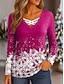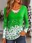 Święta Damskie Podkoszulek Graficzny Płatek śniegu Brzydkie Święta Zabytkowe Elegancki Klasyczny Długi rękaw W serek Zwykłe topy Codzienny Nadruk Czerwony Niebieski Fioletowy Zielony Jesień Zima